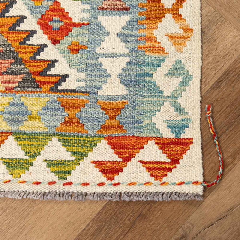 שטיח קילים אפגני זה הוא יצירת אומנות ייחודית אשר נעשתה בעבודת יד מוקפדת על ידי אומנים מסורתיים באפגניסטן. השטיח עשוי בטכניקת האריגה השטוחה הייחודית לקילים, המשלבת דפוסי גיאומטריה מרהיבים וצבעים חיים ועזים, המעניקים לו מראה עשיר ודומיננטי שמתאים לכל חלל.