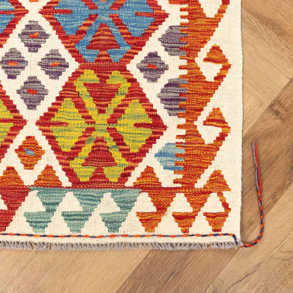 שטיח קילים אפגני זה הוא יצירת אומנות ייחודית אשר נעשתה בעבודת יד מוקפדת על ידי אומנים מסורתיים באפגניסטן. השטיח עשוי בטכניקת האריגה השטוחה הייחודית לקילים, המשלבת דפוסי גיאומטריה מרהיבים וצבעים חיים ועזים, המעניקים לו מראה עשיר ודומיננטי שמתאים לכל חלל.