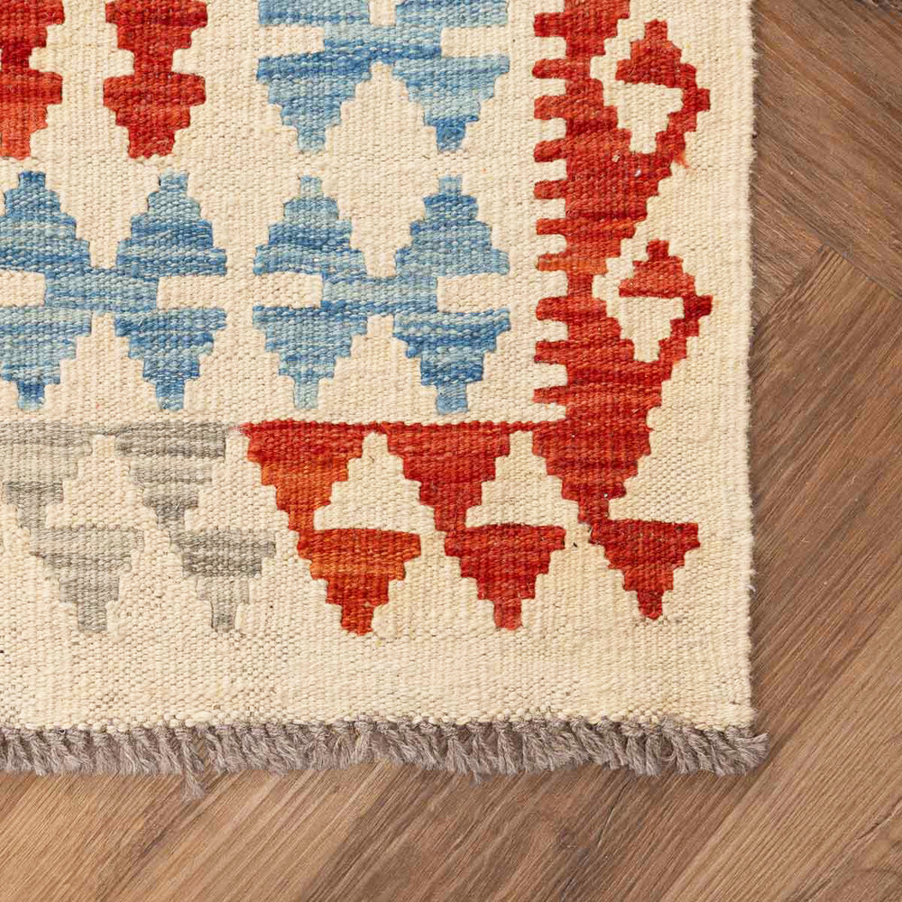 שטיח קילים אפגני זה הוא יצירת אומנות ייחודית אשר נעשתה בעבודת יד מוקפדת על ידי אומנים מסורתיים באפגניסטן. השטיח עשוי בטכניקת האריגה השטוחה הייחודית לקילים, המשלבת דפוסי גיאומטריה מרהיבים וצבעים חיים ועזים, המעניקים לו מראה עשיר ודומיננטי שמתאים לכל חלל.