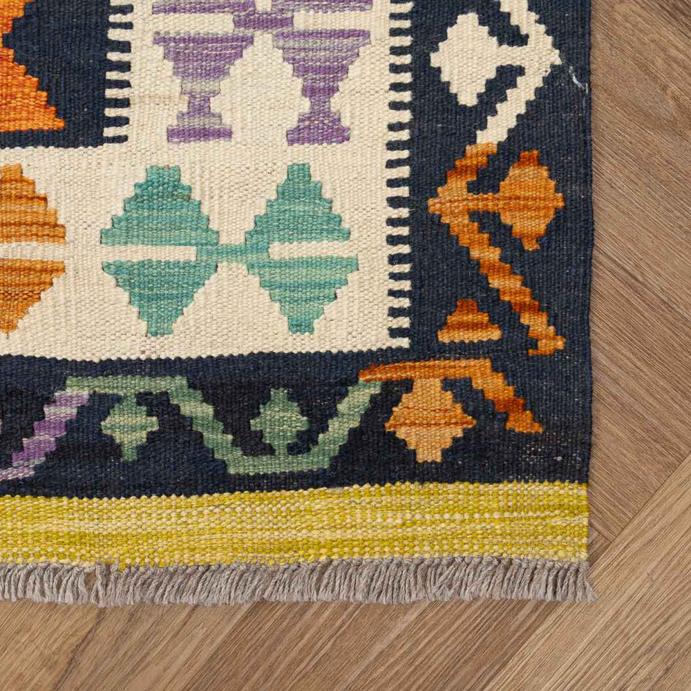שטיח קילים אפגני זה הוא יצירת אומנות ייחודית אשר נעשתה בעבודת יד מוקפדת על ידי אומנים מסורתיים באפגניסטן. השטיח עשוי בטכניקת האריגה השטוחה הייחודית לקילים, המשלבת דפוסי גיאומטריה מרהיבים וצבעים חיים ועזים, המעניקים לו מראה עשיר ודומיננטי שמתאים לכל חלל.