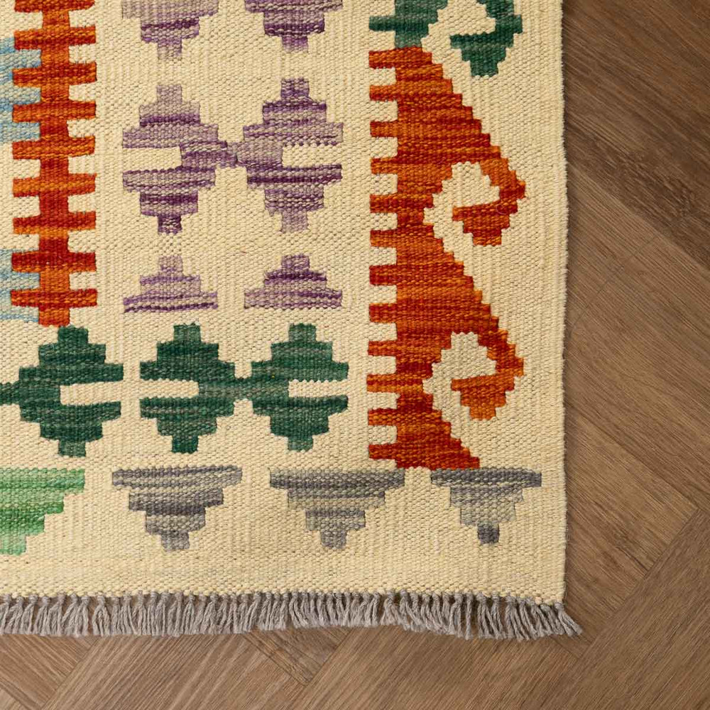 שטיח קילים אפגני זה הוא יצירת אומנות ייחודית אשר נעשתה בעבודת יד מוקפדת על ידי אומנים מסורתיים באפגניסטן. השטיח עשוי בטכניקת האריגה השטוחה הייחודית לקילים, המשלבת דפוסי גיאומטריה מרהיבים וצבעים חיים ועזים, המעניקים לו מראה עשיר ודומיננטי שמתאים לכל חלל.