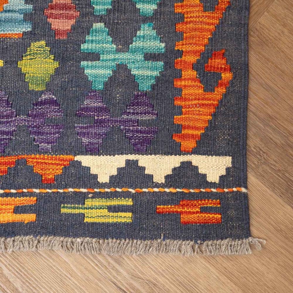 שטיח קילים אפגני זה הוא יצירת אומנות ייחודית אשר נעשתה בעבודת יד מוקפדת על ידי אומנים מסורתיים באפגניסטן. השטיח עשוי בטכניקת האריגה השטוחה הייחודית לקילים, המשלבת דפוסי גיאומטריה מרהיבים וצבעים חיים ועזים, המעניקים לו מראה עשיר ודומיננטי שמתאים לכל חלל.