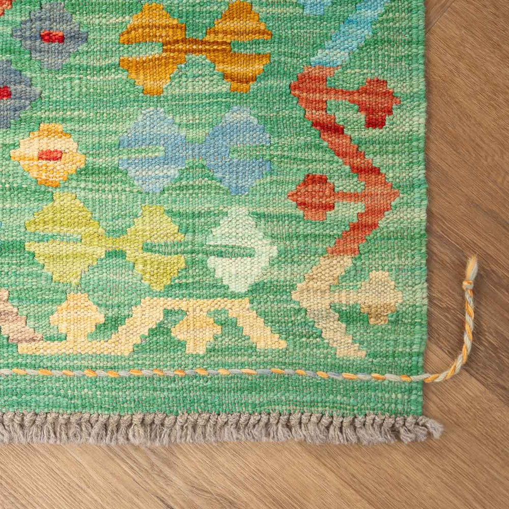 שטיח קילים אפגני זה הוא יצירת אומנות ייחודית אשר נעשתה בעבודת יד מוקפדת על ידי אומנים מסורתיים באפגניסטן. השטיח עשוי בטכניקת האריגה השטוחה הייחודית לקילים, המשלבת דפוסי גיאומטריה מרהיבים וצבעים חיים ועזים, המעניקים לו מראה עשיר ודומיננטי שמתאים לכל חלל.