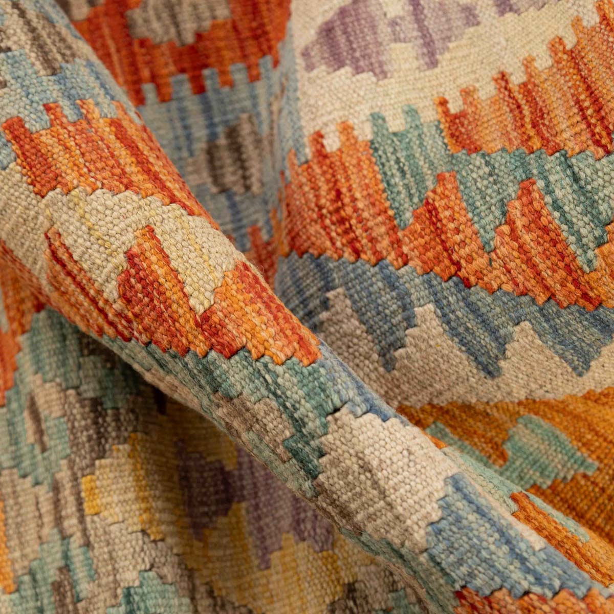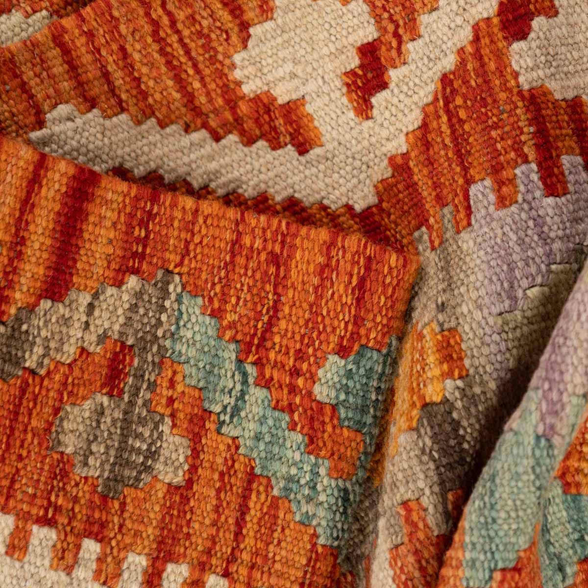 שטיח בעבודת יד באריגת קילים מסורתית, עשוי צמר טבעי איכותי. האריגה השטוחה מעניקה קלילות, עמידות גבוהה ומראה אותנטי עם טקסטורה טבעית ומוחשית.