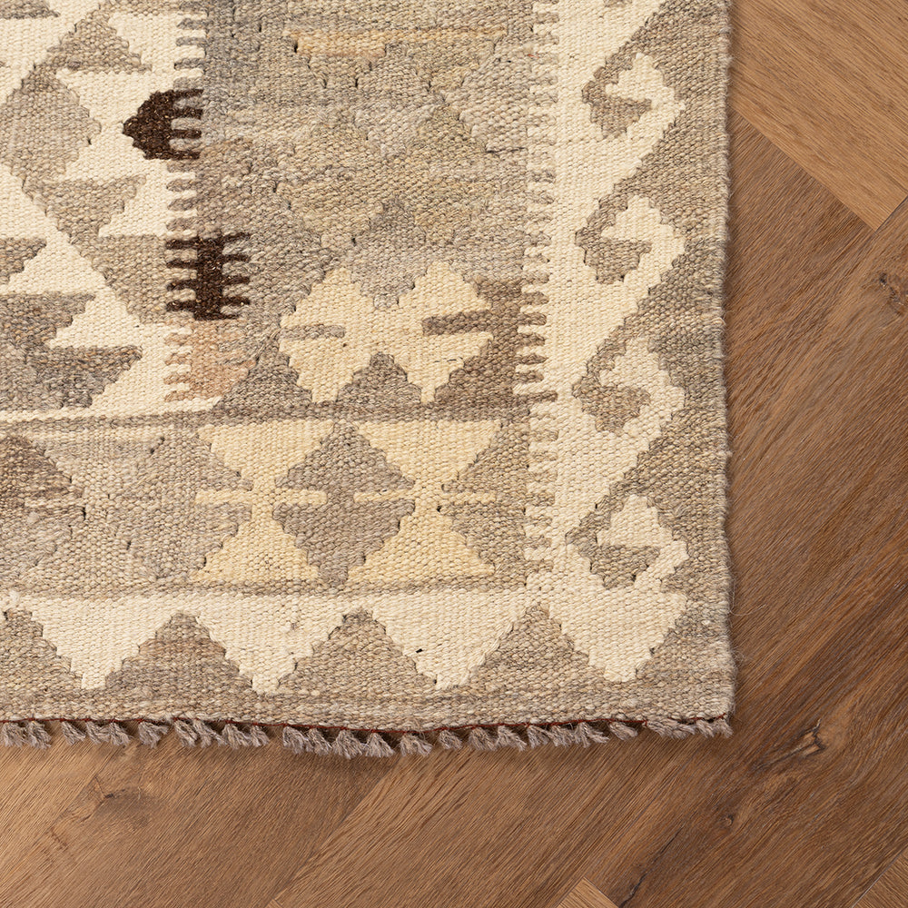 שטיח קילים ענתיק וואש 00 אפור מביא עימו את הקסם והמורשת של שטיחי הקילים המסורתיים בעיצוב מודרני. השטיח עשוי בעבודת יד מוקפדת ומשלב דפוסים גיאומטריים מרהיבים בגווני אפור ובז' רכים. זהו פריט דקורטיבי מרכזי המוסיף חמימות, עומק וסגנון לכל חלל.