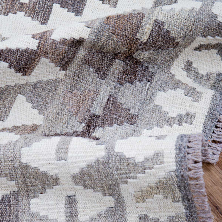 שטיח קילים ענתיק וואש 00 בגווני אפור הוא שטיח בעבודת יד המשלב אלמנטים מסורתיים בעיצוב מודרני. הדפוס הגיאומטרי העשיר והצבעים המעושנים יוצרים מראה ייחודי ואותנטי, מה שהופך אותו לפריט דקורטיבי המעניק תחושת חמימות לכל חלל.
