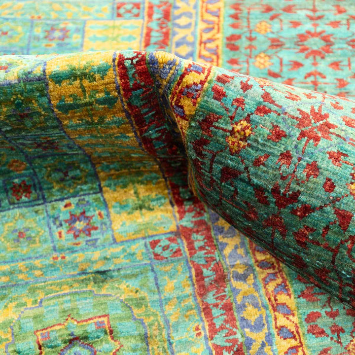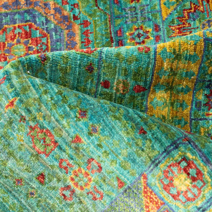 שטיח ממלוק טורקיז מושלם להוספת אופי, צבע ותחכום לכל חלל מגורים.
