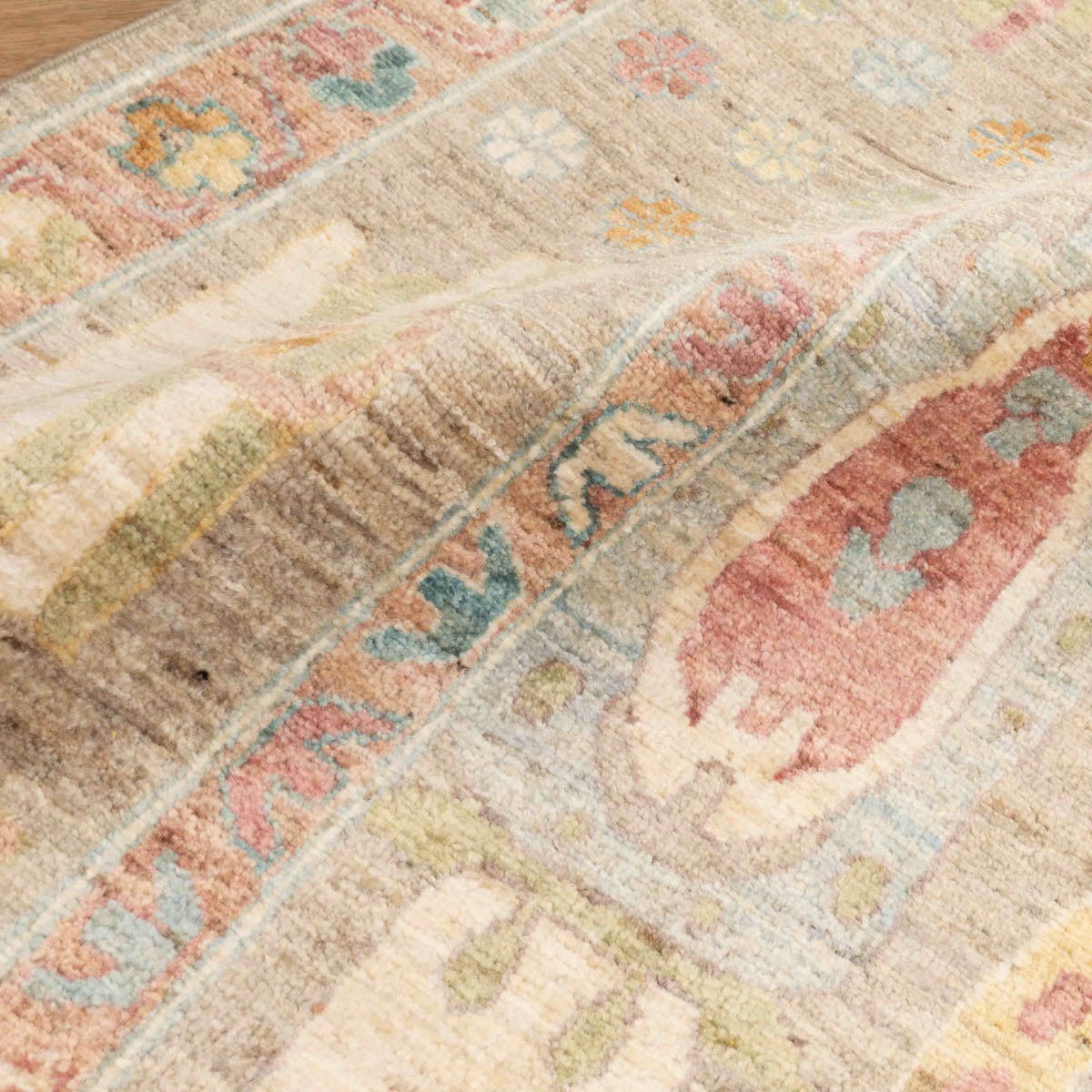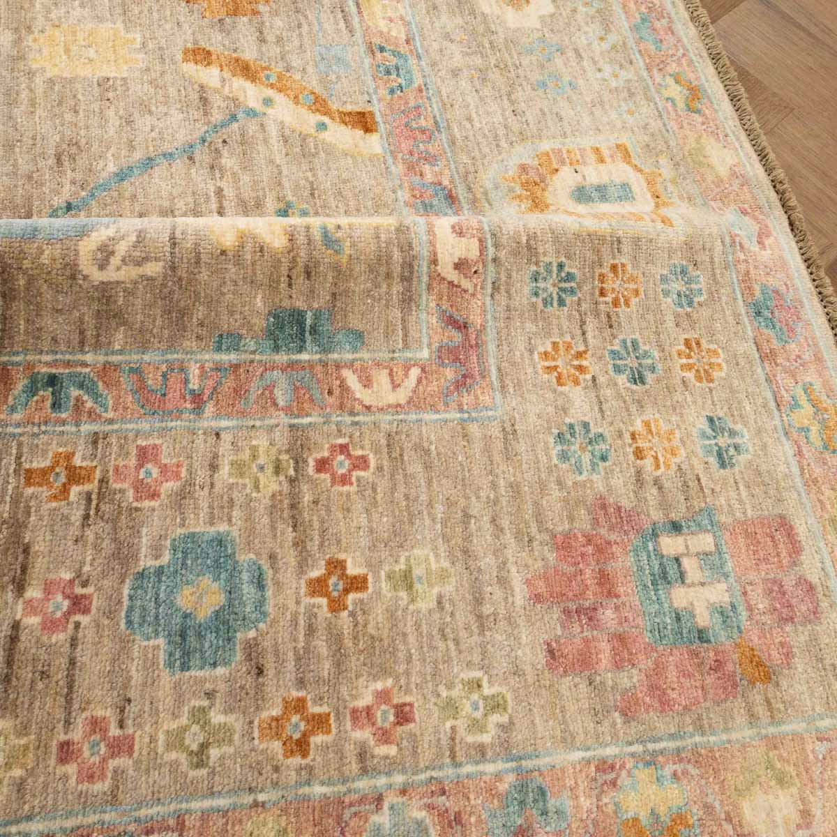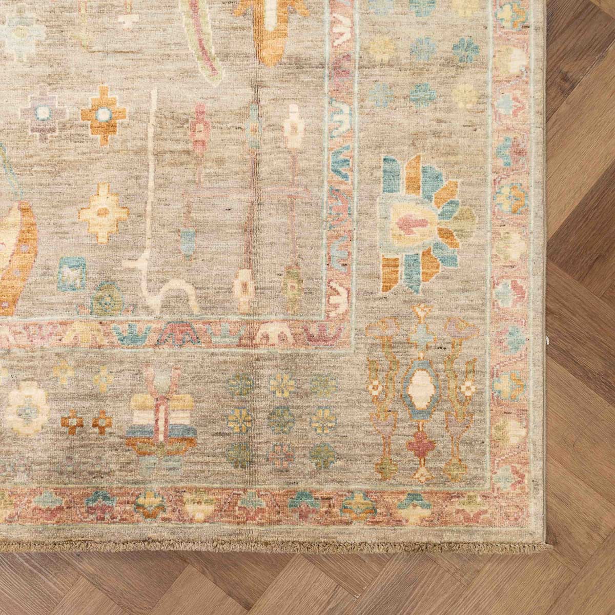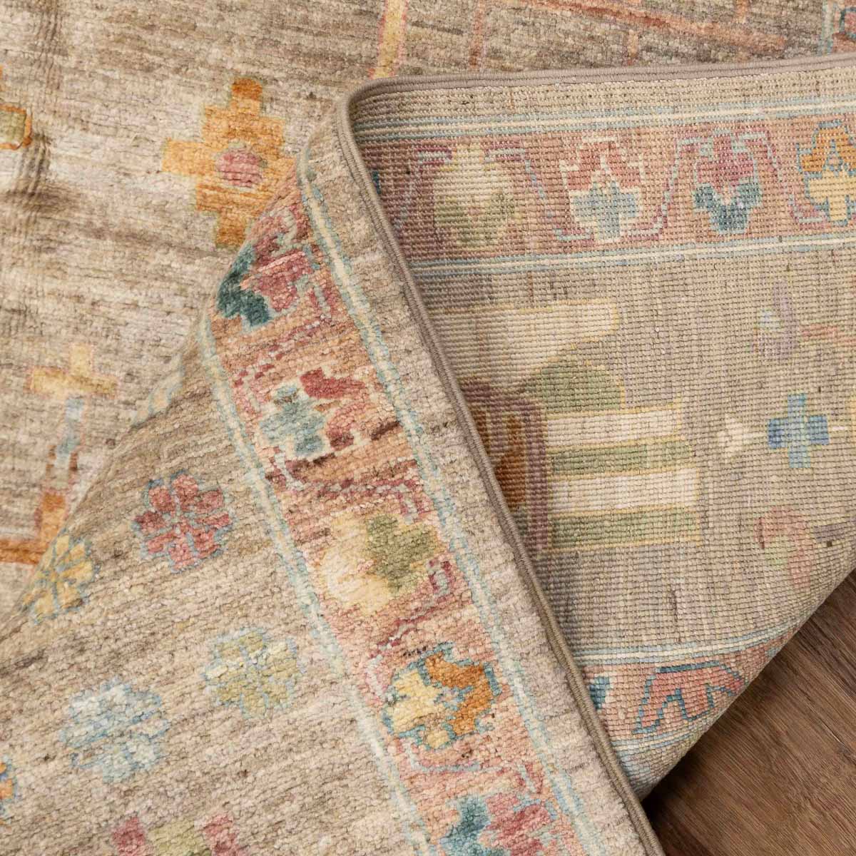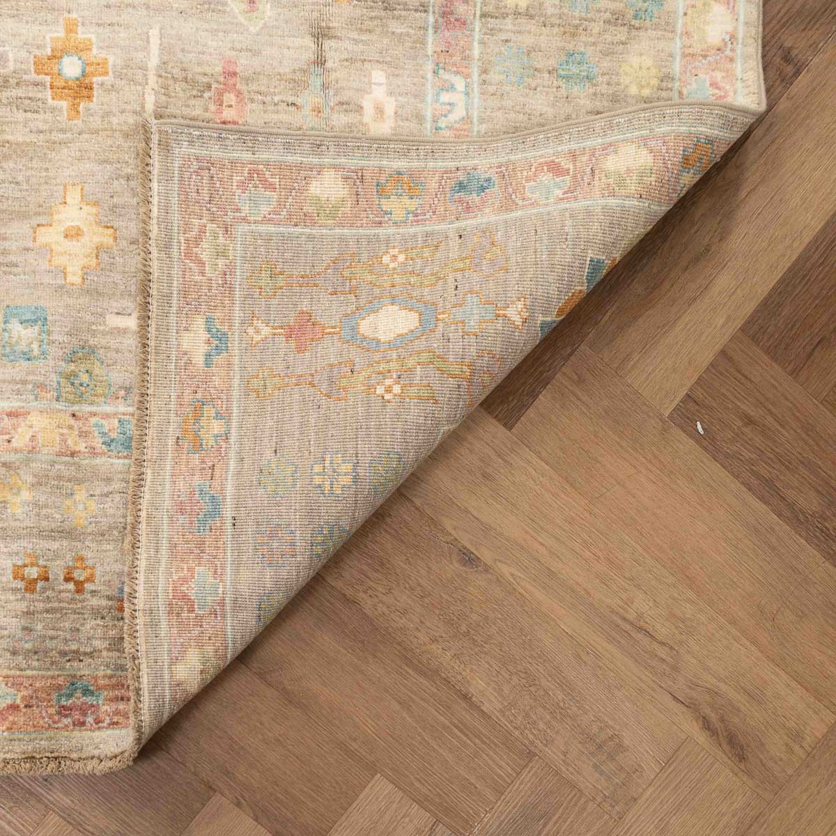 דוגמת אושק קלאסית בפרשנות רכה ומעודכנת, עם מוטיבים מסורתיים בפריסה פתוחה ואוורירית. שילוב של אפור פסטלי עם נגיעות בז', קרם, תכלת וגוונים חמים עדינים יוצר מראה טבעי, נקי והרמוני. השטיח משתלב בקלות בסלון, חדר שינה או פינת אוכל ומוסיף עומק בלי להכביד על העיצוב.