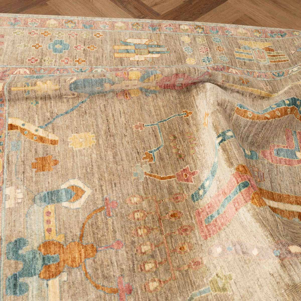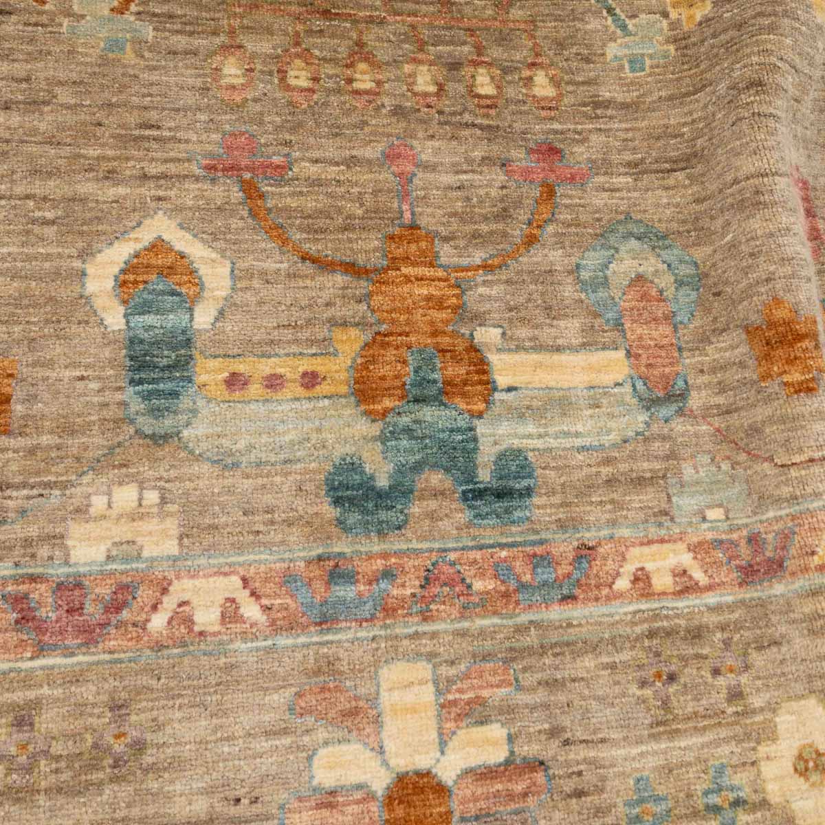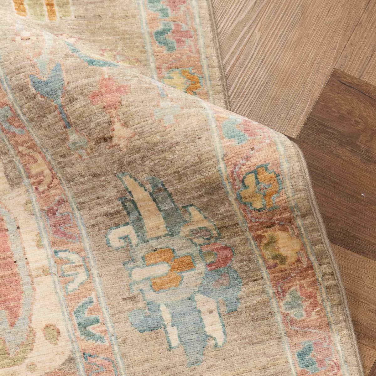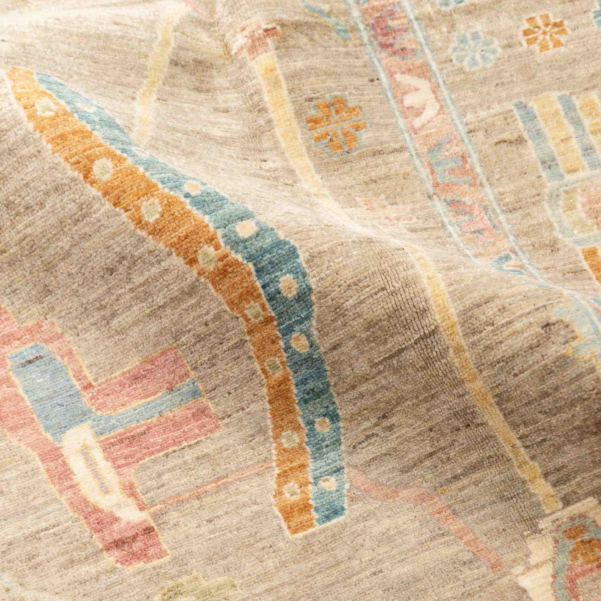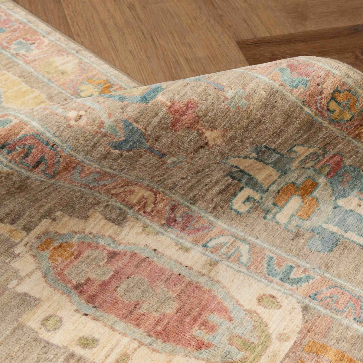 שטיח בעבודת יד, ארוג מצמר טבעי איכותי. הצמר מעניק תחושה נעימה למגע, עמידות גבוהה ויכולת לשמור על המראה והצבע לאורך שנים. כל שטיח נסרג בקשרים ידניים, מה שמבטיח ייחוד, איכות ואופי שאין בייצור תעשייתי.