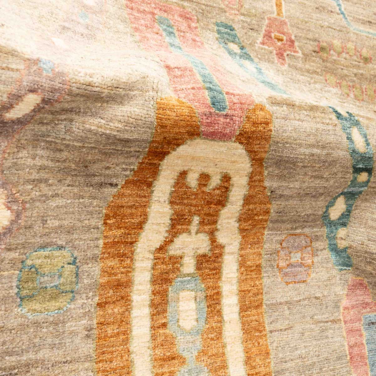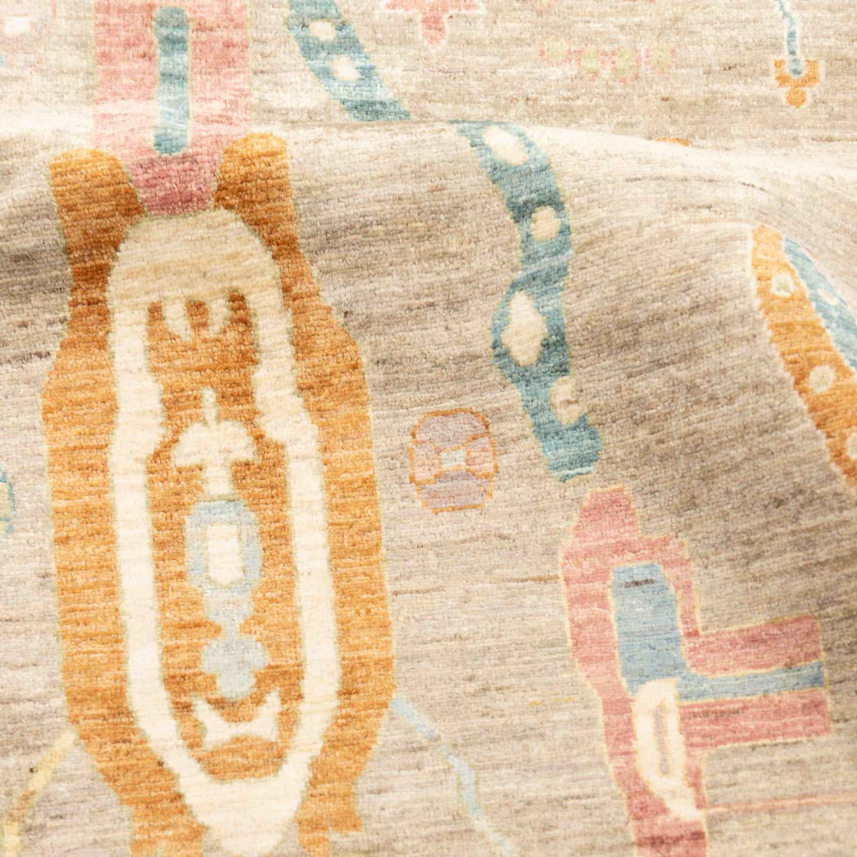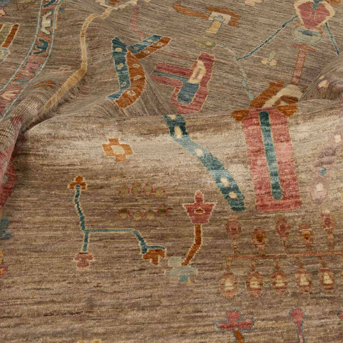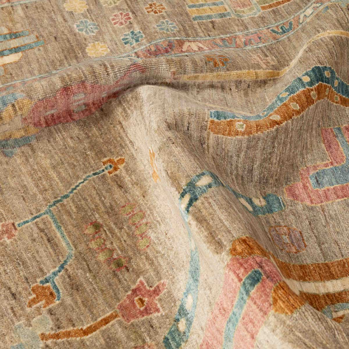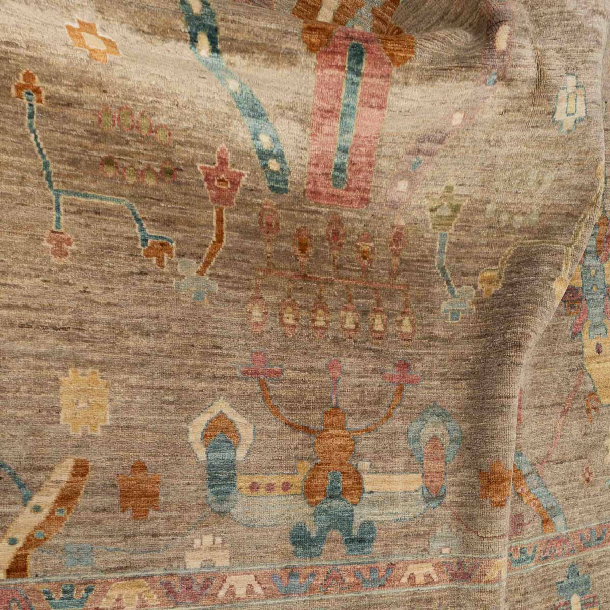 שטיח בעבודת יד, ארוג מצמר טבעי איכותי. הצמר מעניק תחושה נעימה למגע, עמידות גבוהה ויכולת לשמור על המראה והצבע לאורך שנים. כל שטיח נסרג בקשרים ידניים, מה שמבטיח ייחוד, איכות ואופי שאין בייצור תעשייתי.