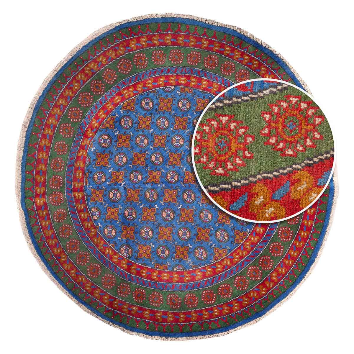 שטיח אפגני בוכרה 00 עגול אדום-כחול | 195×201 ס"מ | Bokhara Rug