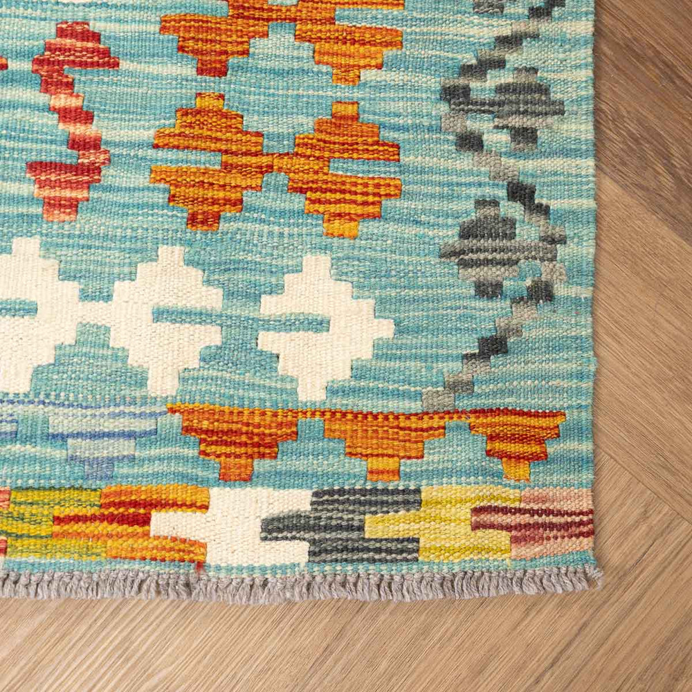 שטיח קילים אפגני זה הוא יצירת אומנות ייחודית אשר נעשתה בעבודת יד מוקפדת על ידי אומנים מסורתיים באפגניסטן. השטיח עשוי בטכניקת האריגה השטוחה הייחודית לקילים, המשלבת דפוסי גיאומטריה מרהיבים וצבעים חיים ועזים, המעניקים לו מראה עשיר ודומיננטי שמתאים לכל חלל.