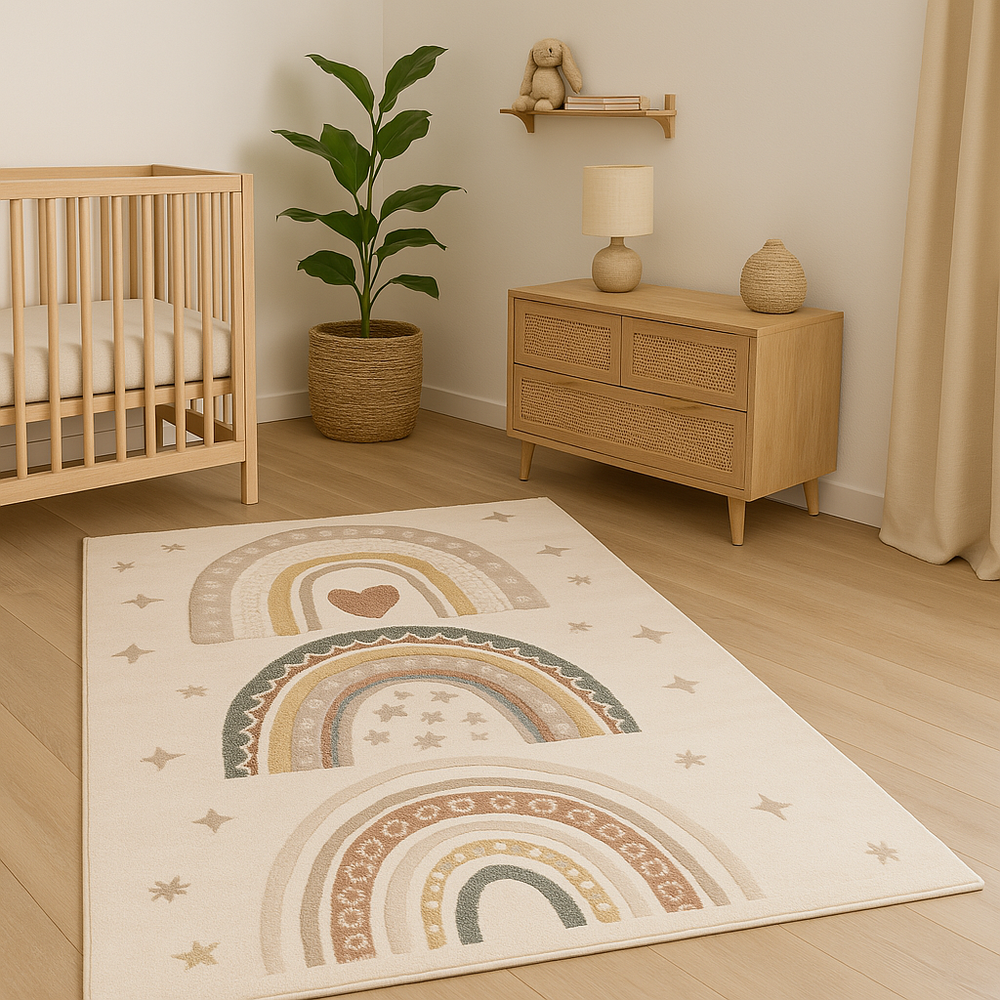 - דפוס וצבעים: עיצוב גיאומטרי מדויק בשילוב צבעים חמים כמו אדום, כחול, צהוב ושמנת, יוצר מראה דקורטיבי שמתאים לסלון, לחדרי אוכל ולחללים נוספים.