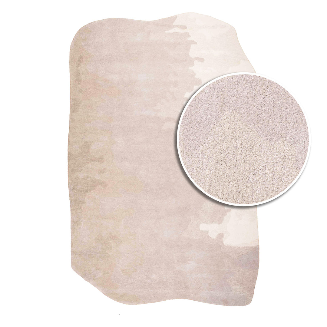 השטיח מעוצב בקווים אורגניים וצבעים משתנים המדמים תנועה של אדמה, מים ואור. שילובי הגוונים העדינים – בז’, אפור, חום ושמנת – יוצרים מראה הרמוני ומעודן. הצורה האמורפית מעניקה תחושת תנועה טבעית, מושלמת לסלון מודרני, פינת קריאה או חדר שינה בעיצוב מינימליסטי.